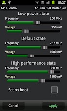 AnTutu CPU Master is a tool for changing the CPU/GPU speed (capable of overclock and underclock) on a rooted android devices to improve performance or save battery.